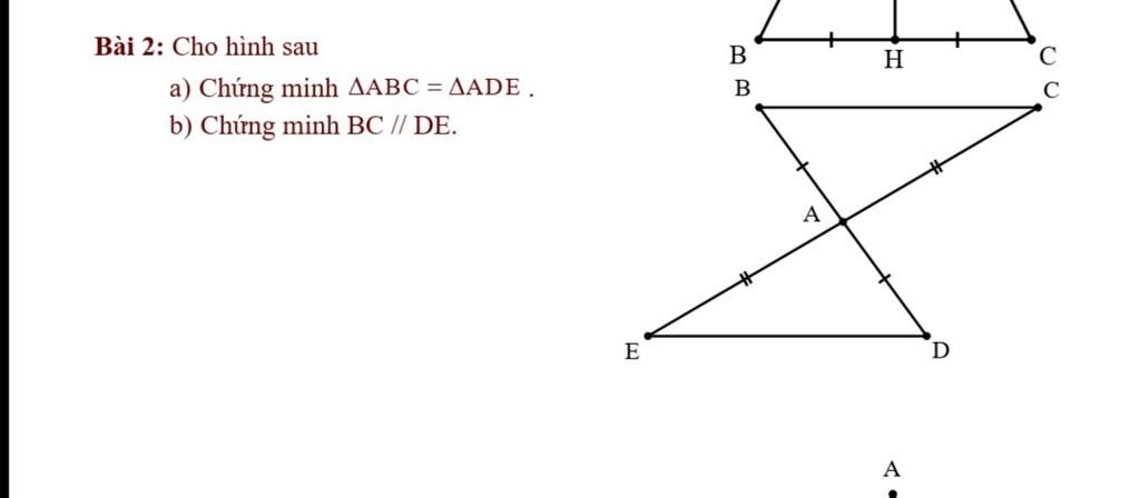 `hat(BAC)=hat(EAD)(2` góc đối đỉnh `)`