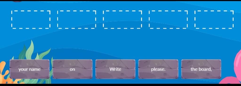 Đáp án: Write your name on the board, please.