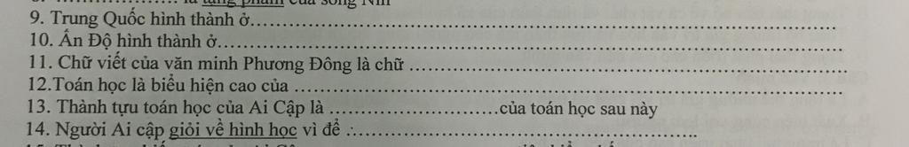 11. Chữ viết của văn minh Phương Đông là chữ Hán.