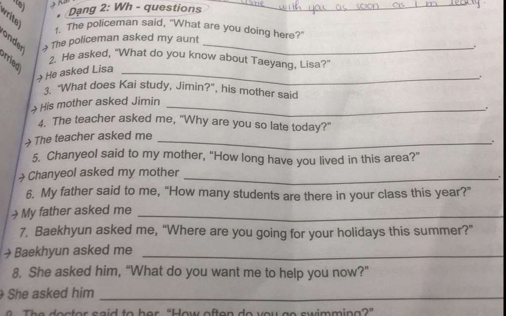 Câu tường thuật - dạng Wh-questions
