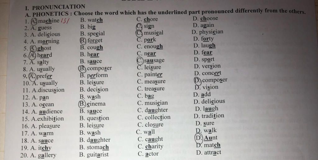 19. B phát âm là /k/ - còn lại là /tʃ/