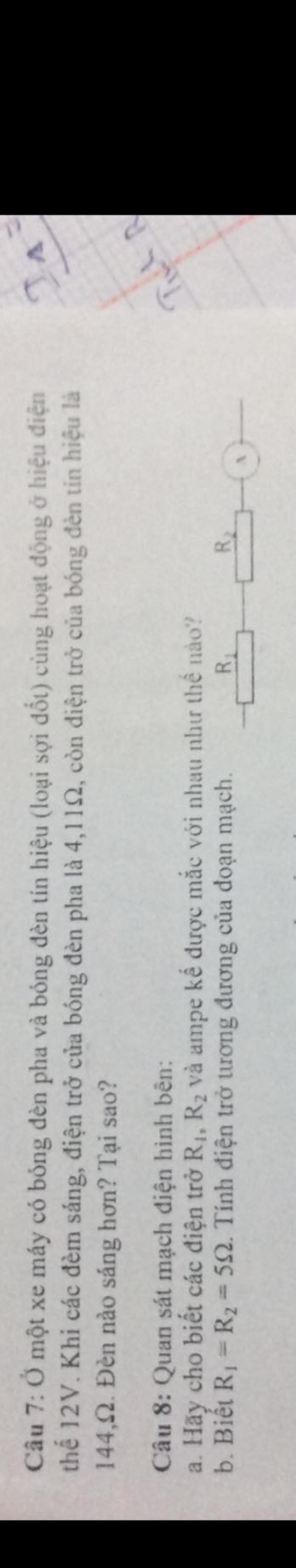 Câu 7: Ở một xe máy có bóng đèn pha và bóng đèn tín hiệu (loại sợi đốt) cùng hoạt động ở hiệu điện