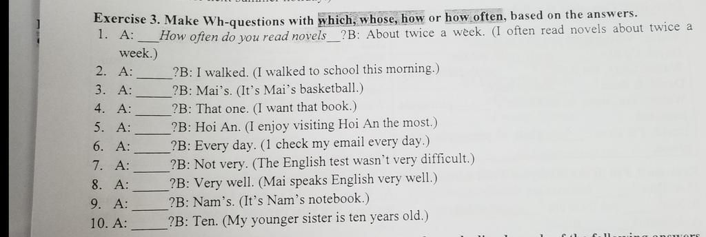 `-` how: như thế nào - hỏi về phương tiện, cảm xúc, mức độ..