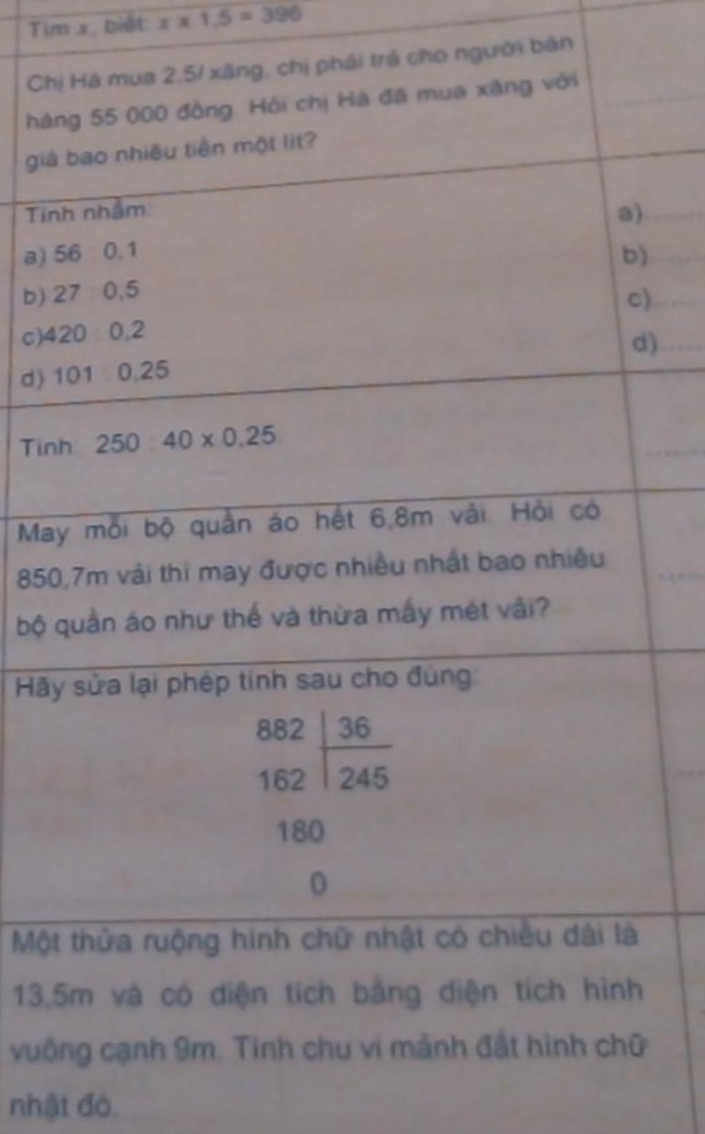 câu 3: 850,7 : 6,8 = 125 dư 7 nên may được 125 bộ quần áo và còn thừa 7 bộ.