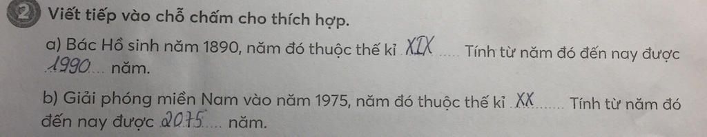`b)` Giải phóng miền Nam vào năm `1975,` năm đó thuộc thế kỉ `XX.` Tính từ năm đó đến nay được `48` năm. `(` Với số năm hiện tại là `2023)`