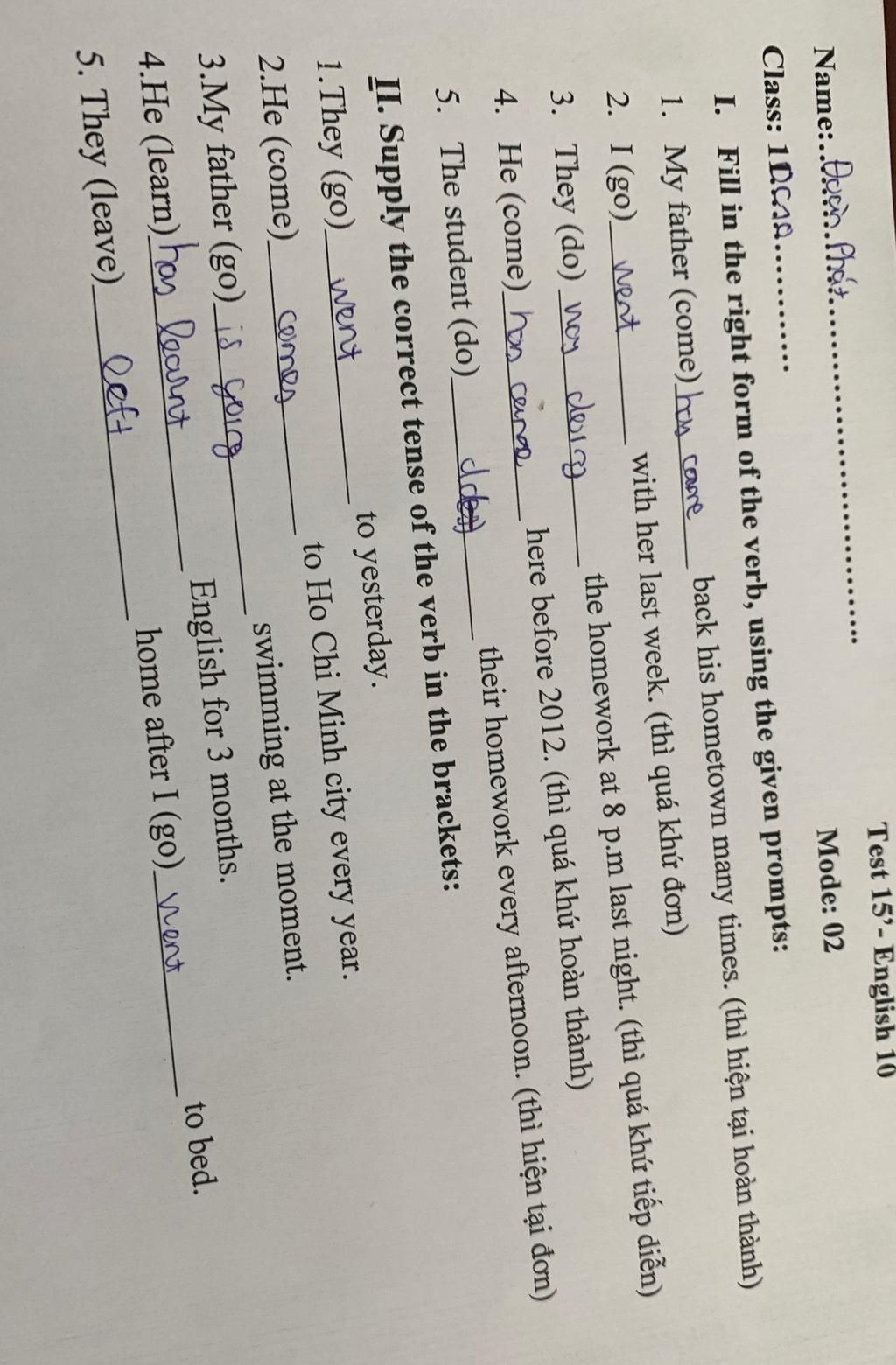 `@`Câu nào đúng thì mình không làm lại nữa nhé!!!