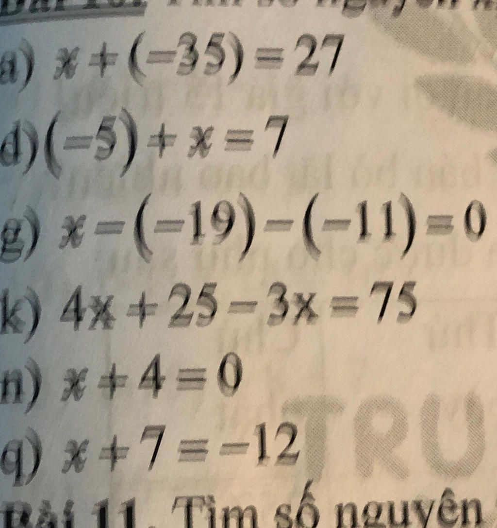 `q) x + 7 = (-12)`