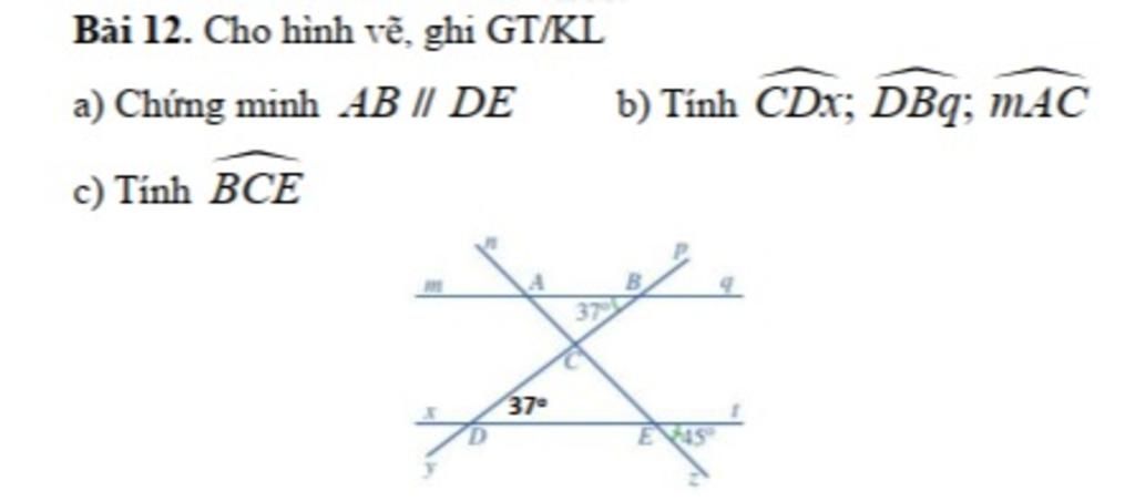 Vậy, `\hat{CDx}=\hat{DBq}=143^o` và `\hat{mAC}=135^o`