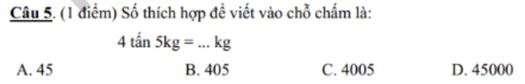 C. vì 4 tấn=4000kg nên 4t5kg=4005kg