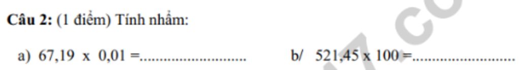 `@0,01 ` sau dấu phẩy có `2 ` số`=>67,19 ` tiến dấu phẩy qua `2 ` số được `0,6719 `