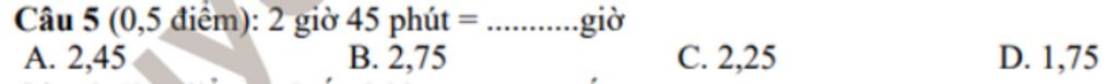`=>2` giờ `45` phút `= 2+0,75=2,75` giờ