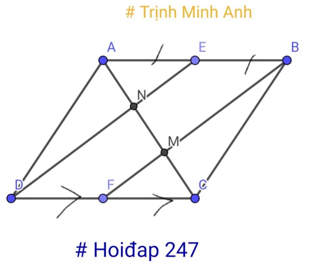 ` → ` $\text{ EB // DF ( E ∈ AB ; F ∈ DC ) }$