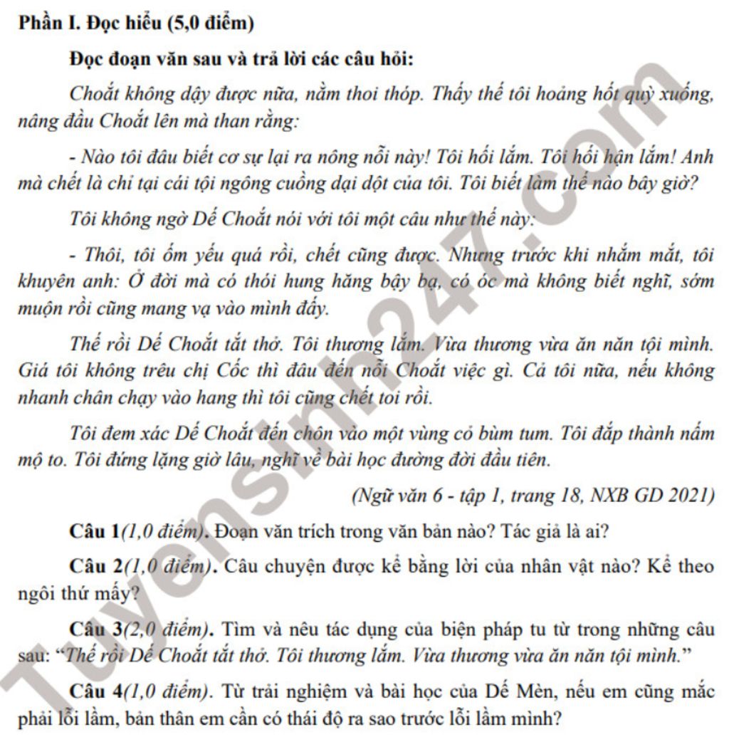 Câu 1: Đoạn văn trích trong văn bản "Bài học đường đời đầu tiên" trong tác phẩm "Dế Mèn phiêu lưu ký" do tác giả Tô Hoài sáng tác