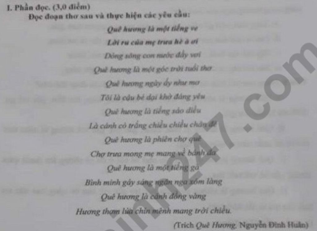 Đọc đoạn thơ sau và thực hiện các yêu cầu: