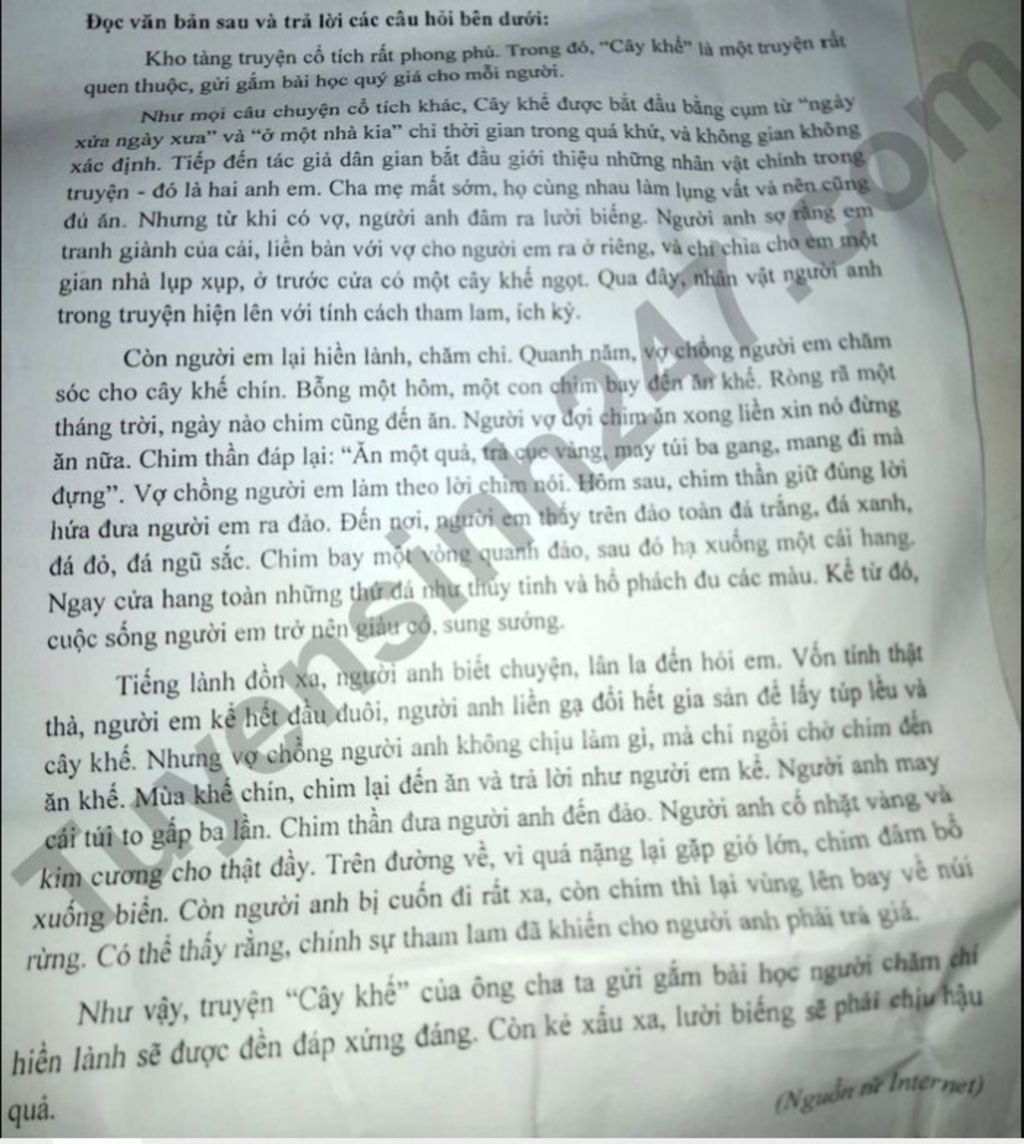 Đọc văn bản sau và trả lời các câu hỏi bên dưới: