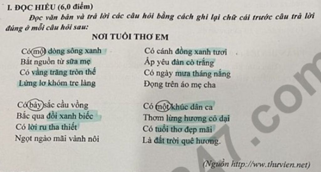 Đọc văn bản và trả lời các câu hỏi bằng cách ghi lại chữ cái trước câu trả lời