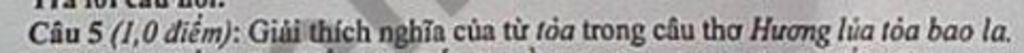 Tỏa trong câu thơ "Hương lúa tỏa bao la" là một động từ dùng để lan truyền thứ gì đó ra xung quanh