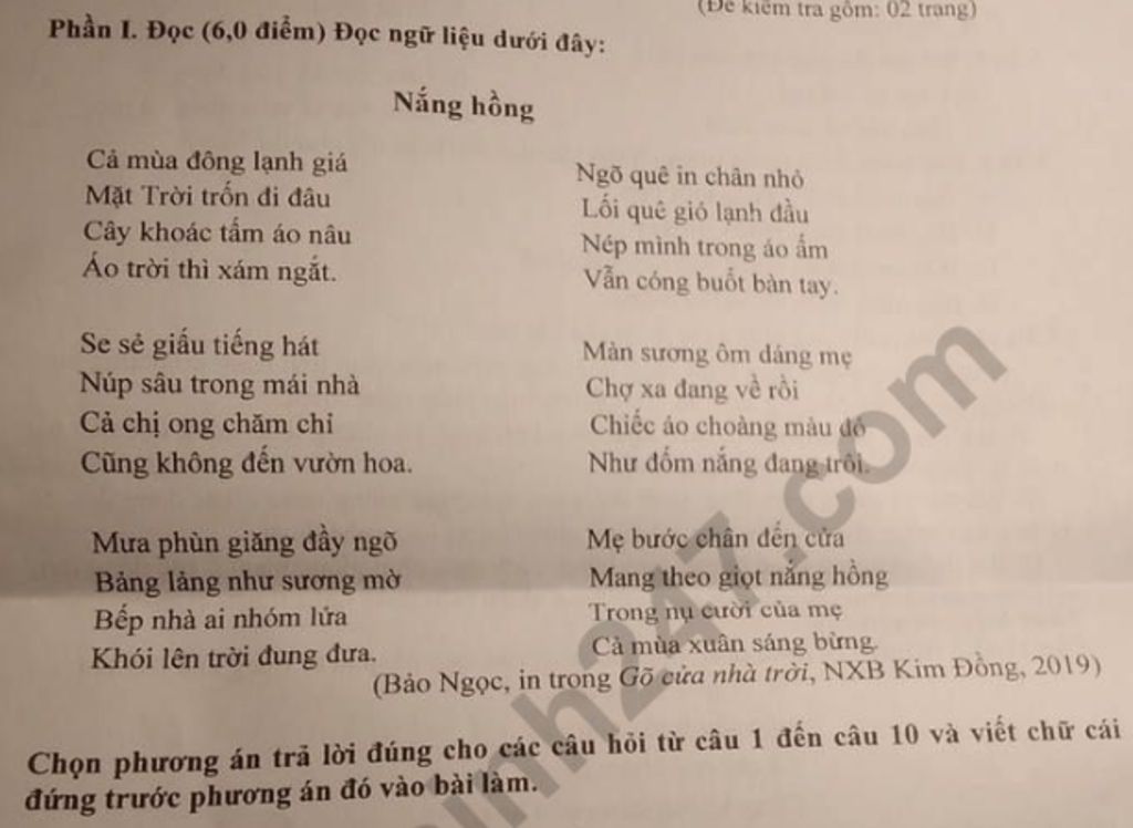 Phần I. Đọc (6,0 điểm) Đọc ngữ liệu dưới đây: