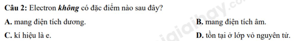 `-` Câu `2:` Electron không có đặc điểm nào sau đây`?`