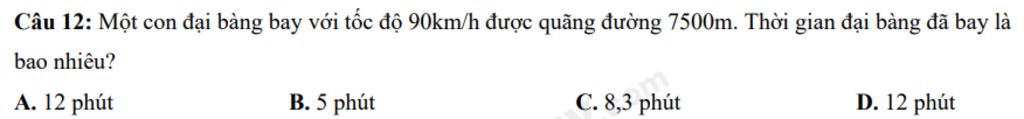 Thời gian để con đại bàng bay hết quãng đường `7500` m là: