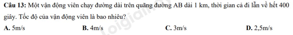 $v = \frac{s}{t}= \frac{1000}{400}= 2,5 (m/s)$