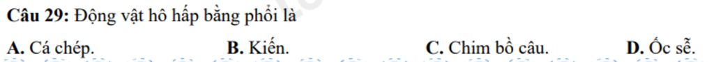 Và động vật hô hấp bằng phổi là chim bồ câu.