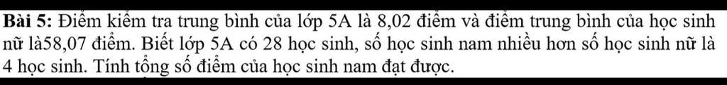 Tổng số điểm của học sinh nam trong lớp `5A` đạt được là: