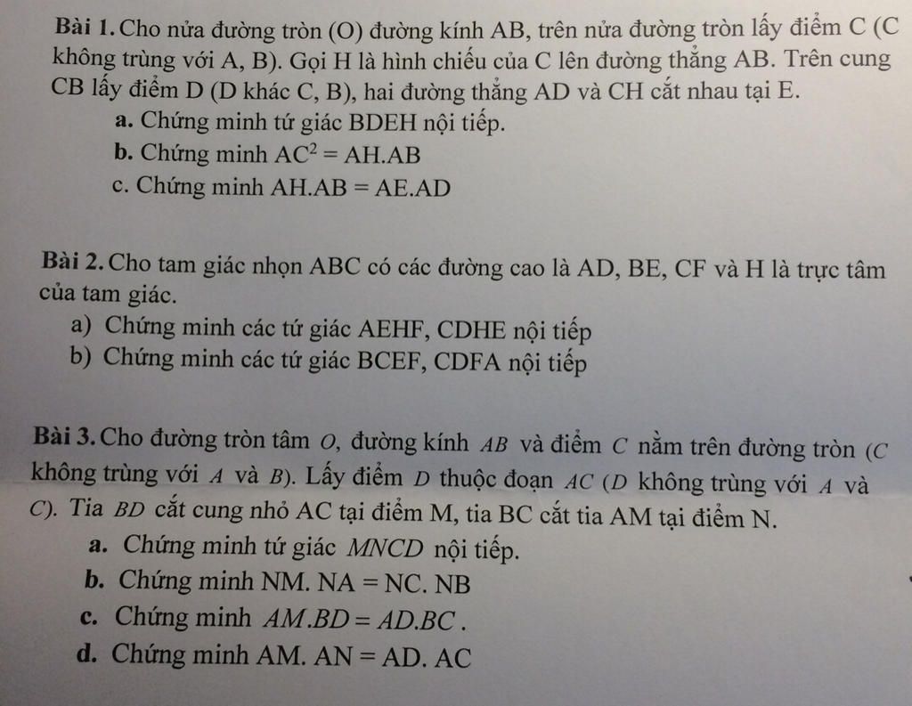 Bài 1.Cho nửa đường tròn (O) đường kính AB, trên nửa đường tròn lấy điểm C (C