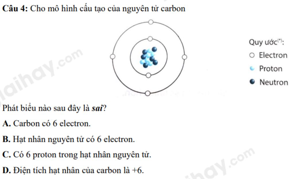`@` Chọn `B.` Hạt nhân nguyên tử có `6` electron