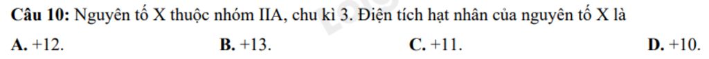 `=>` Điện tích hạt nhân của nguyên tố `X` là: `+12`