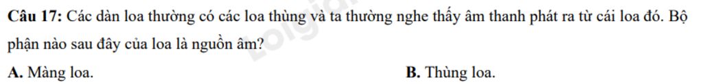 Câu `17:` Các dàn loa thường có các loa thùng và ta thường nghe thấy âm thanh phát ra từ cái loa đó. Bộ phận nào sau đây của loa là nguồn âm?