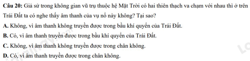 `⇒` `C.` Không, vì âm thanh không truyền được trong chân không`.`
