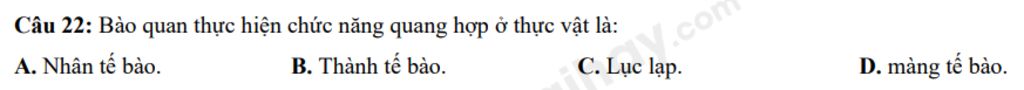 `->` Lục lạp là bào quan thực hiện chức năng quang hợp ở thực vật.