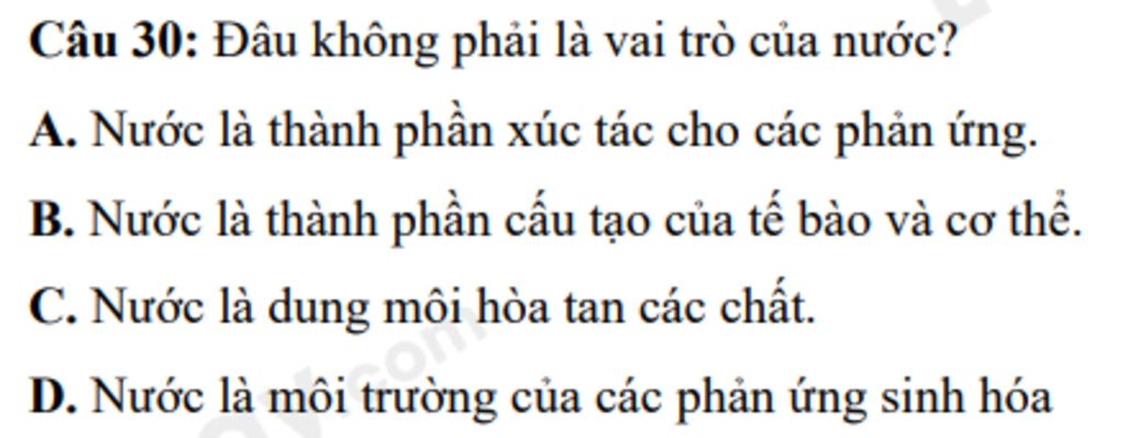 `⇒` `A.` Nước là thành phần xúc tác cho các phản ứng`.`