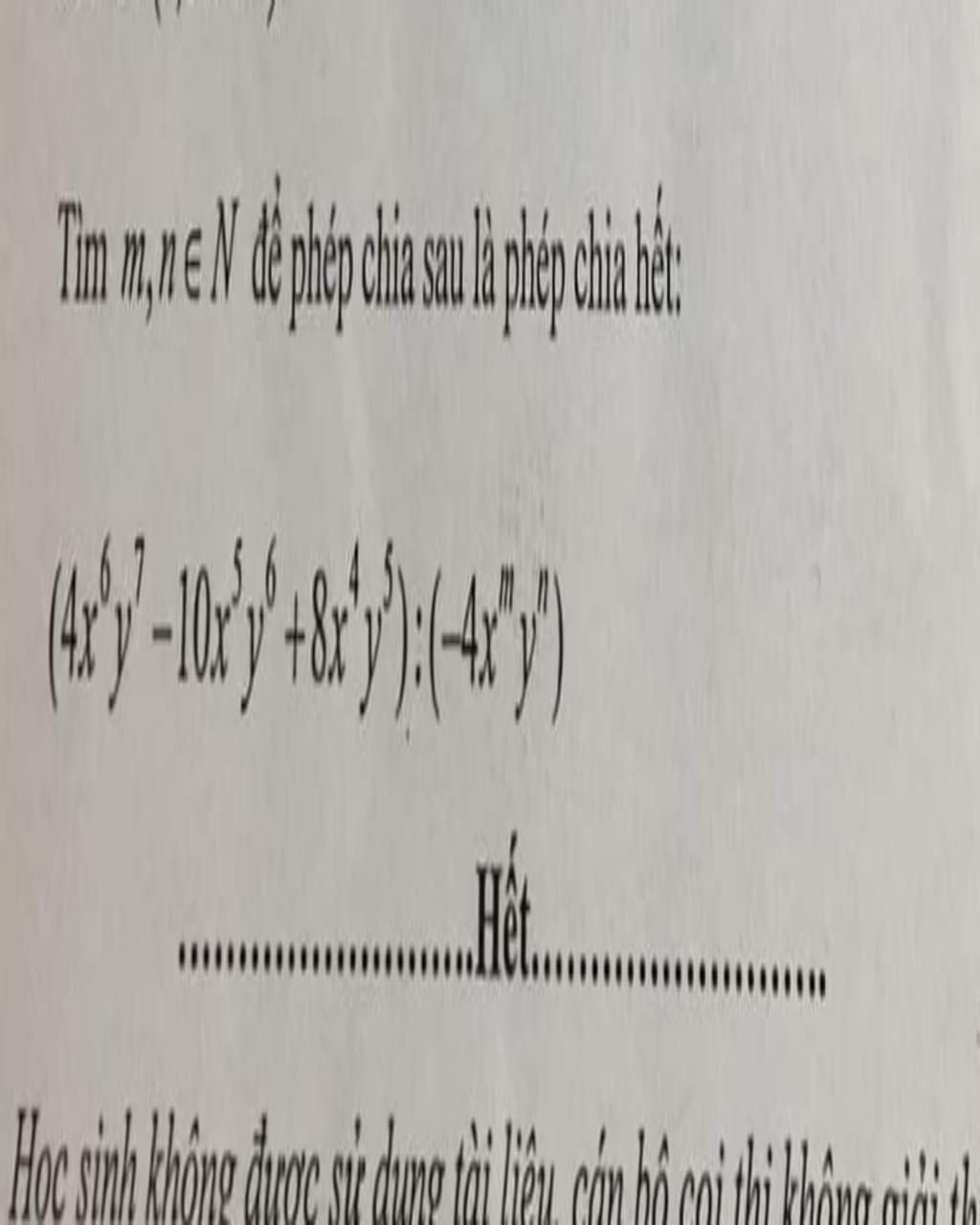 Ta có: `(4x^6 y^7 - 10x^5 y^6 + 8x^4 y^5) : (-4x^m y^n)`