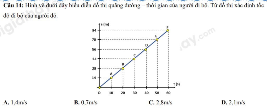 Vậy tốc độ đi bộ của người đó là: ${ 1,4 m/s }$