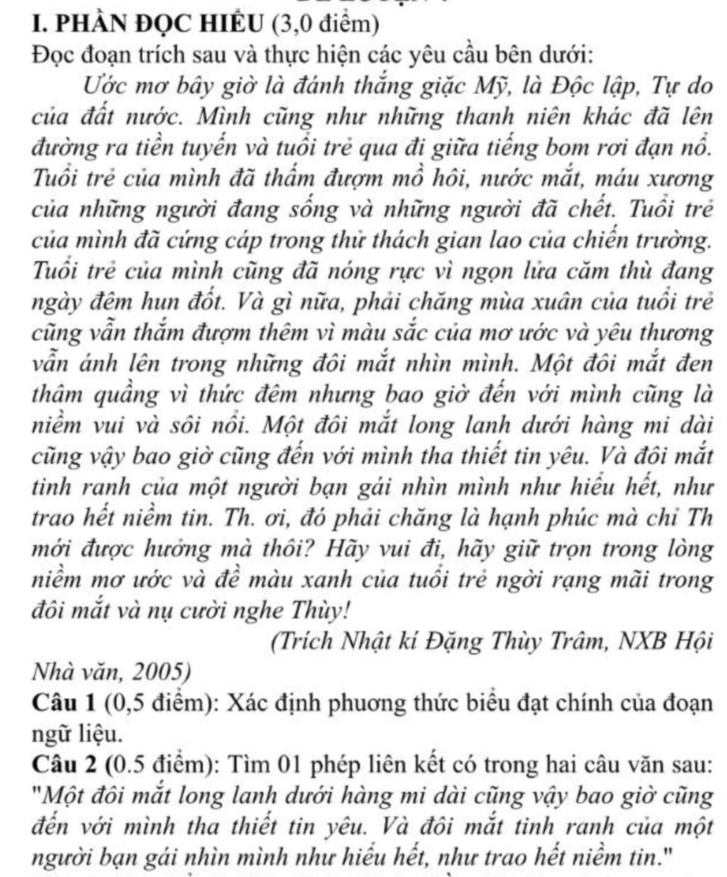 `-` Phương thức biểu đạt chính của đoạn ngữ liệu : Nghị luận