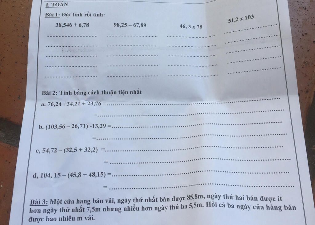 $85,8+78,3+72,8=236,9(m$ $vải)$