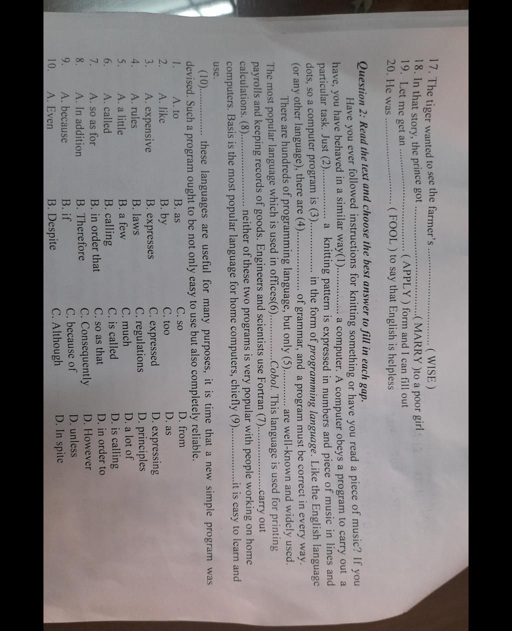 Question 2: Read the text and choose the best answer to fill in each gap.