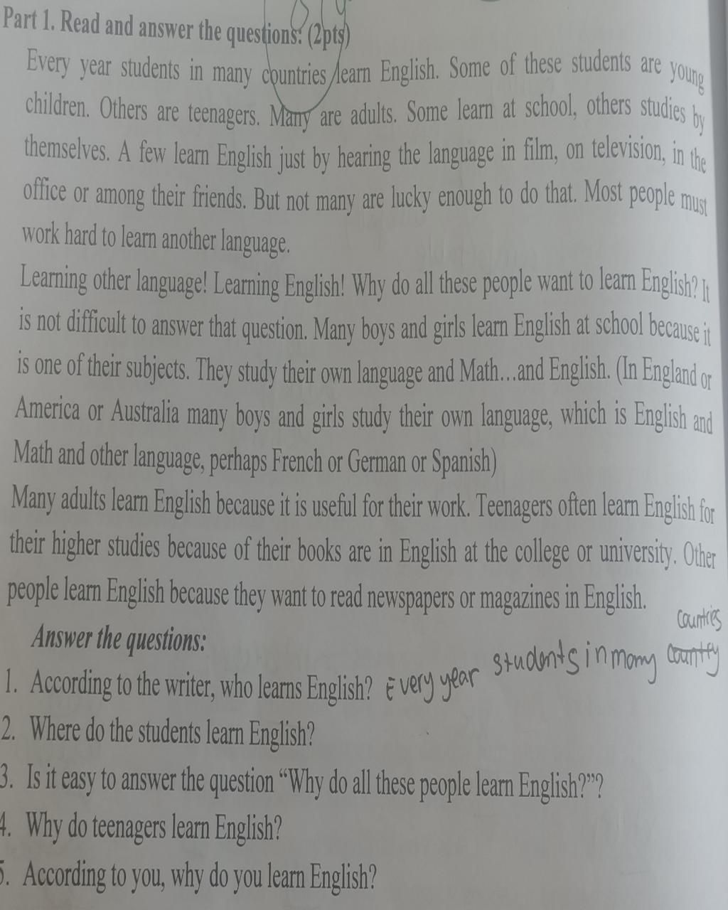 Every year students in many countries learn English. Some of these students are young