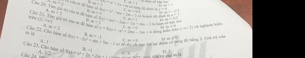 20. Để hàm số trên là hàm số bậc hai thì
