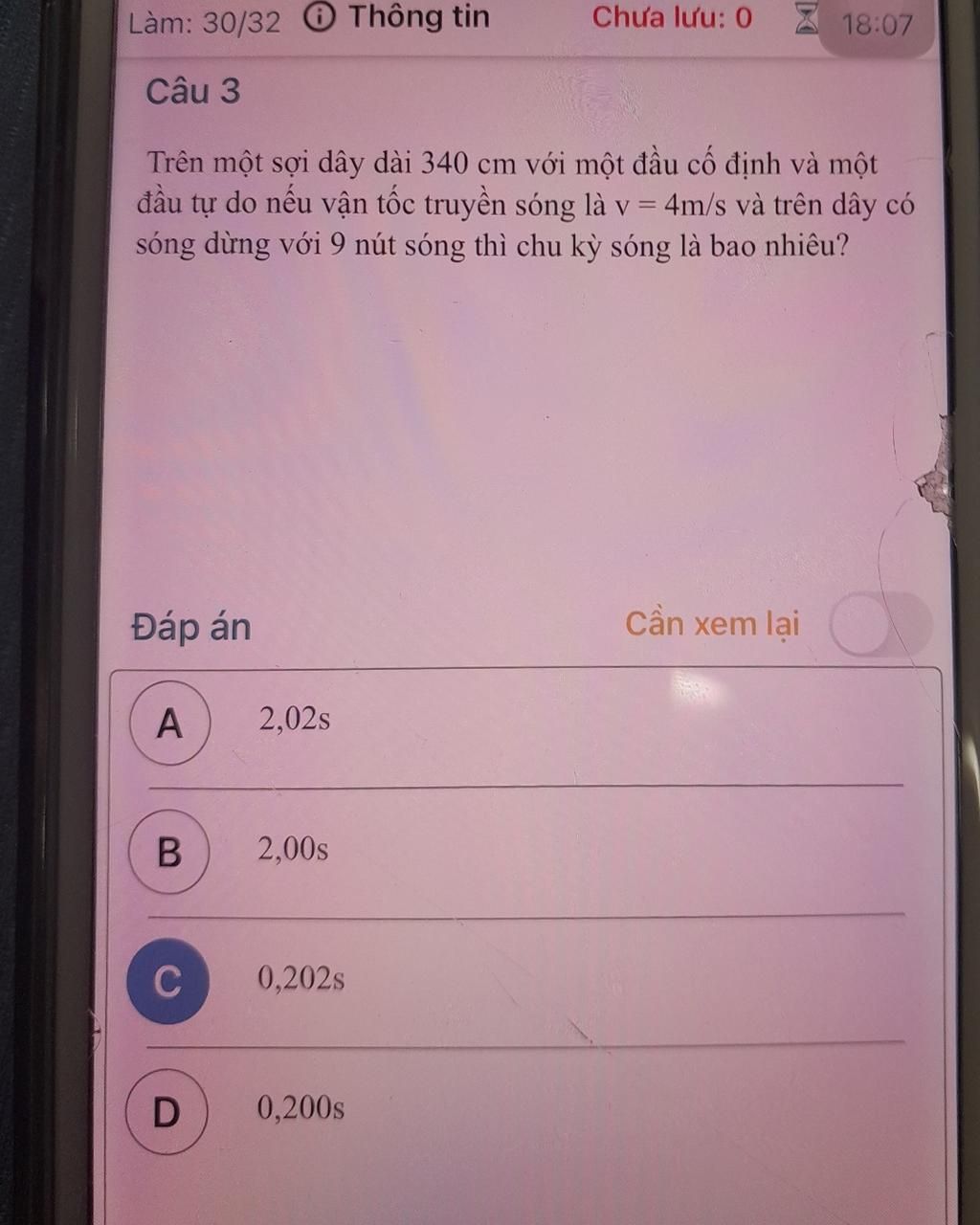 T = \dfrac{\lambda }{v} = \dfrac{{85}}{{400}} = 0,2125\left( s \right)