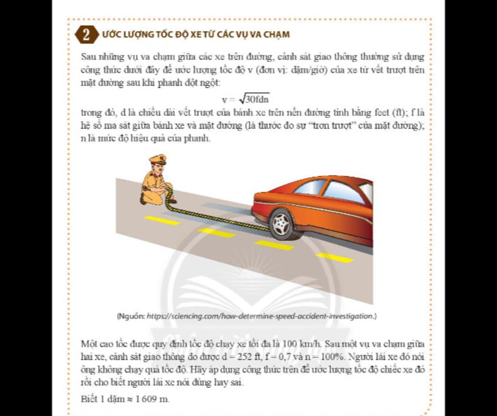 công thức dưới đây để ước lượng tốc độ v (đơn vị dặm/giờ) của xe tử vết trượt trên