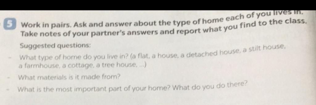 Work in pairs. Ask and answer about the type of home each of you lives in.