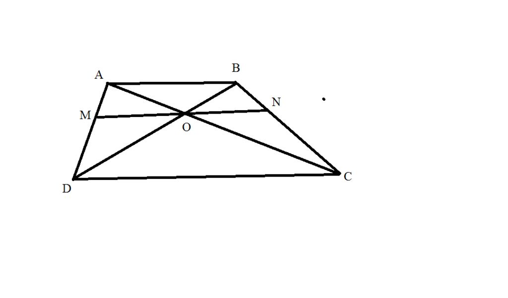 `=>` `(AO)/(AC)`=`(BO)/(BD)` ( talet vẫn đúng với tam giác ngoài ) (3)