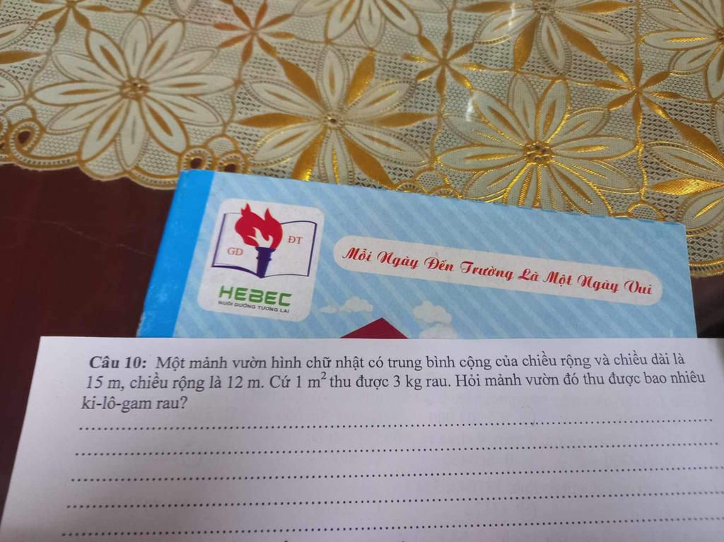 Mảnh vườn đó thu được số ki - lô - gam rau là :