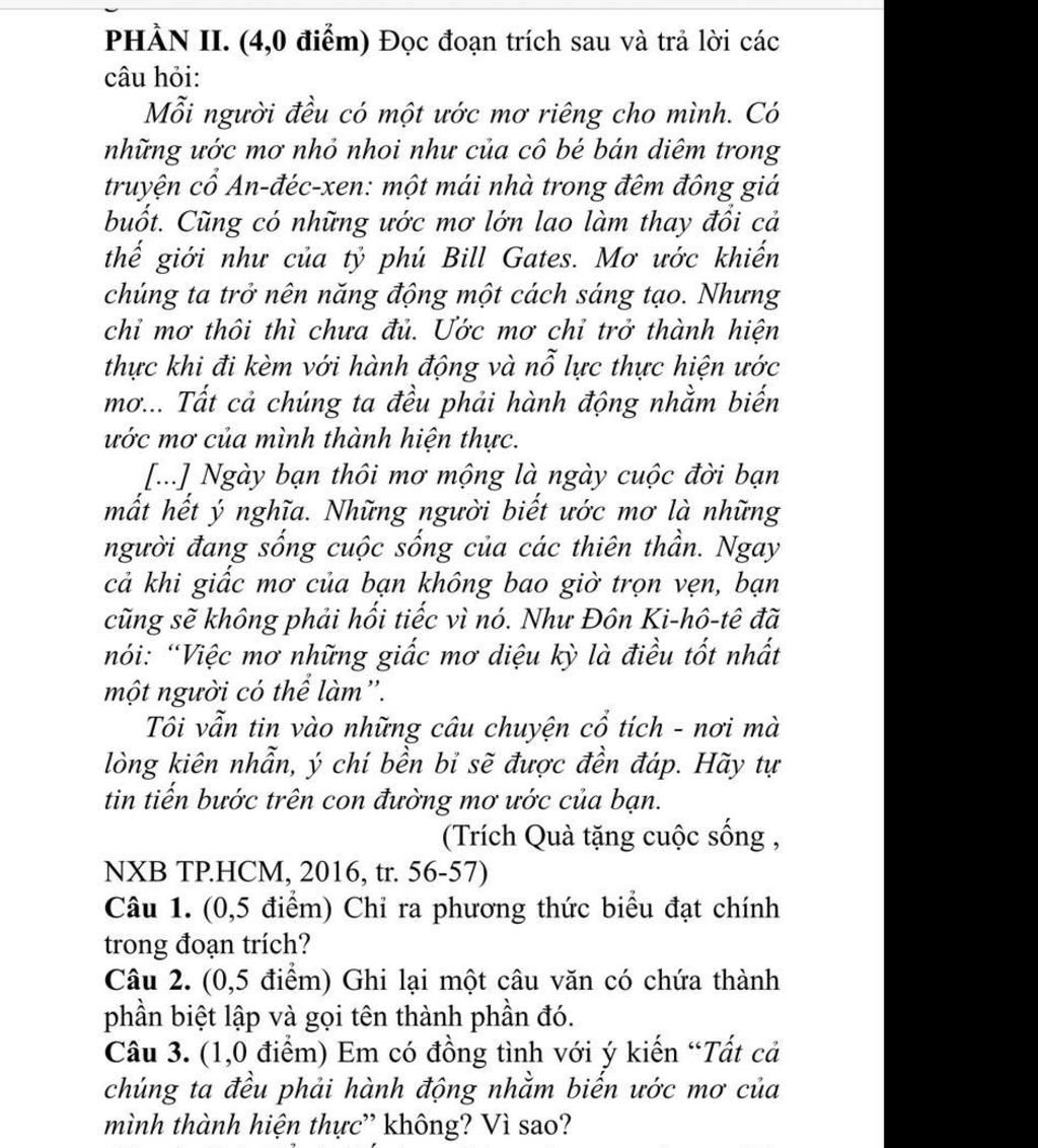 Câu `1` : Phương thức biểu đạt chính của đoạn trích trên là : nghị luận