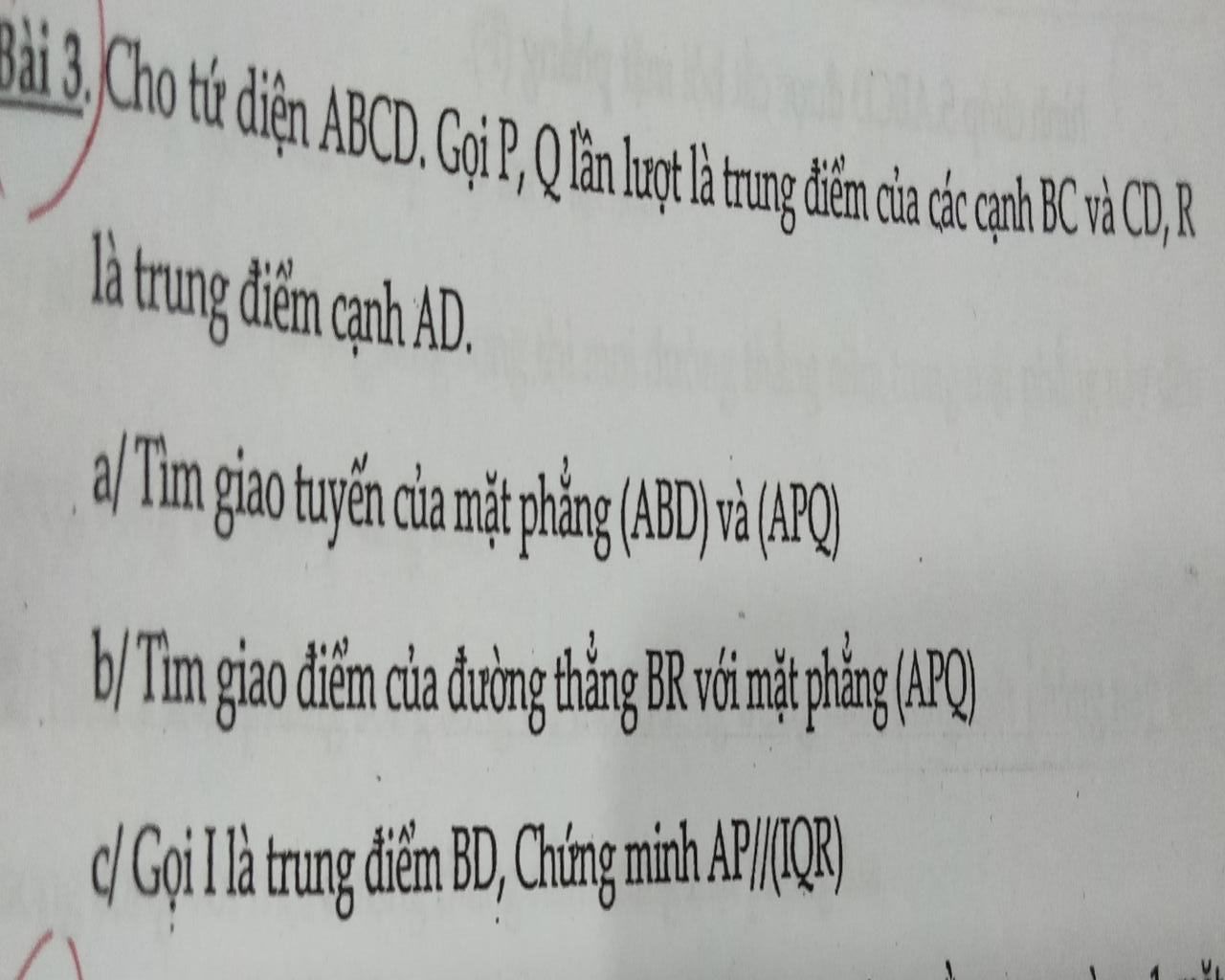 Bài 3. Cho tứ diện ABCD. Gọi P, Q lần lượt là trung điểm của các cạnh BC và CD,R