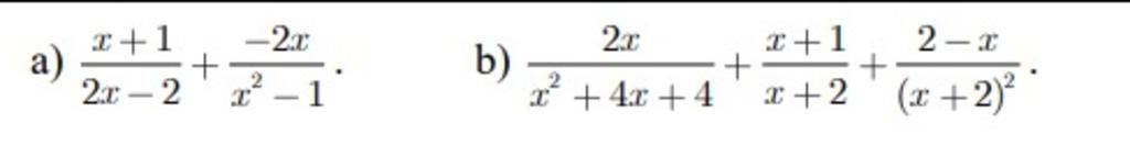 a) `(x+1)/(2x - 2) + (-2x)/(x^2 - 1)`