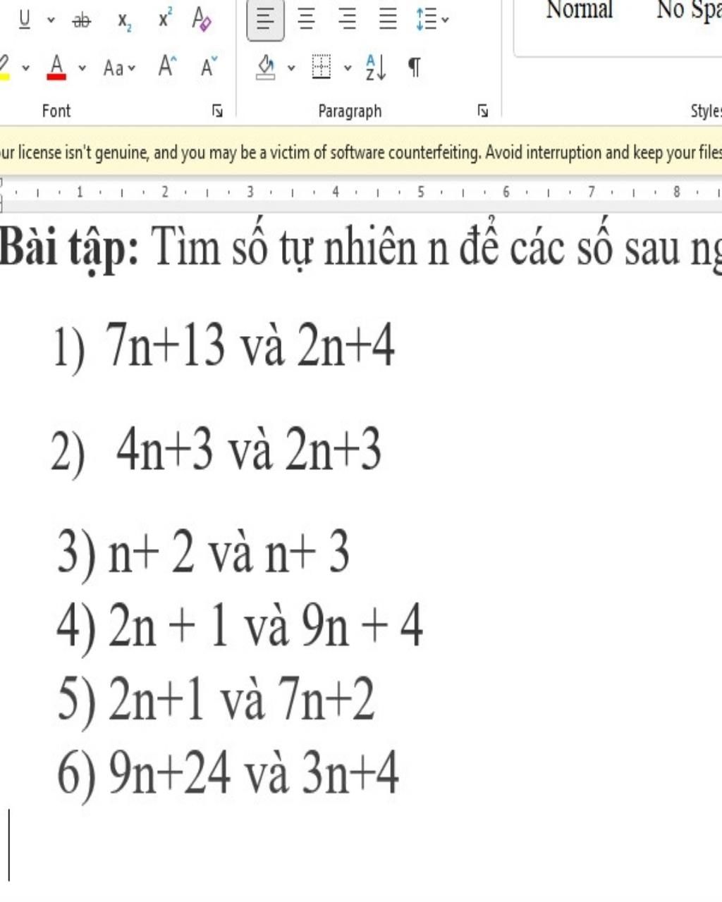 6,9n+24 và 3n+4